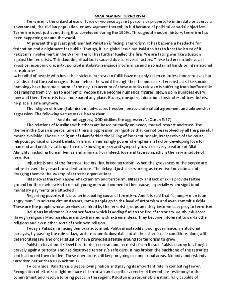 Essay On Terrorism In Pakistan | Essay On War Against Terrorism
